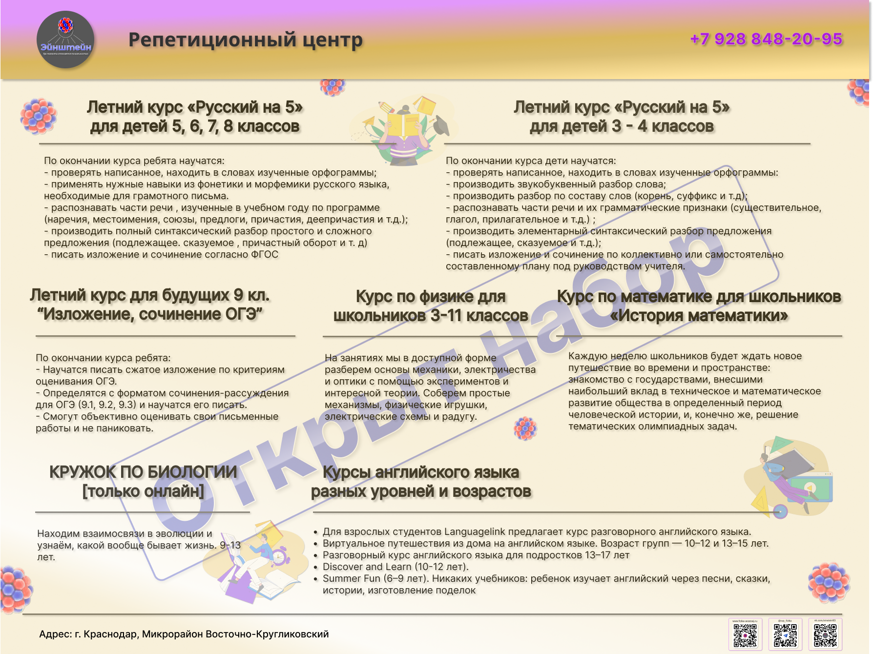 Предлагаем записать Вашего ребенка на летнее обучение по программам: